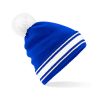 Contrasting pom pom and striped cuff